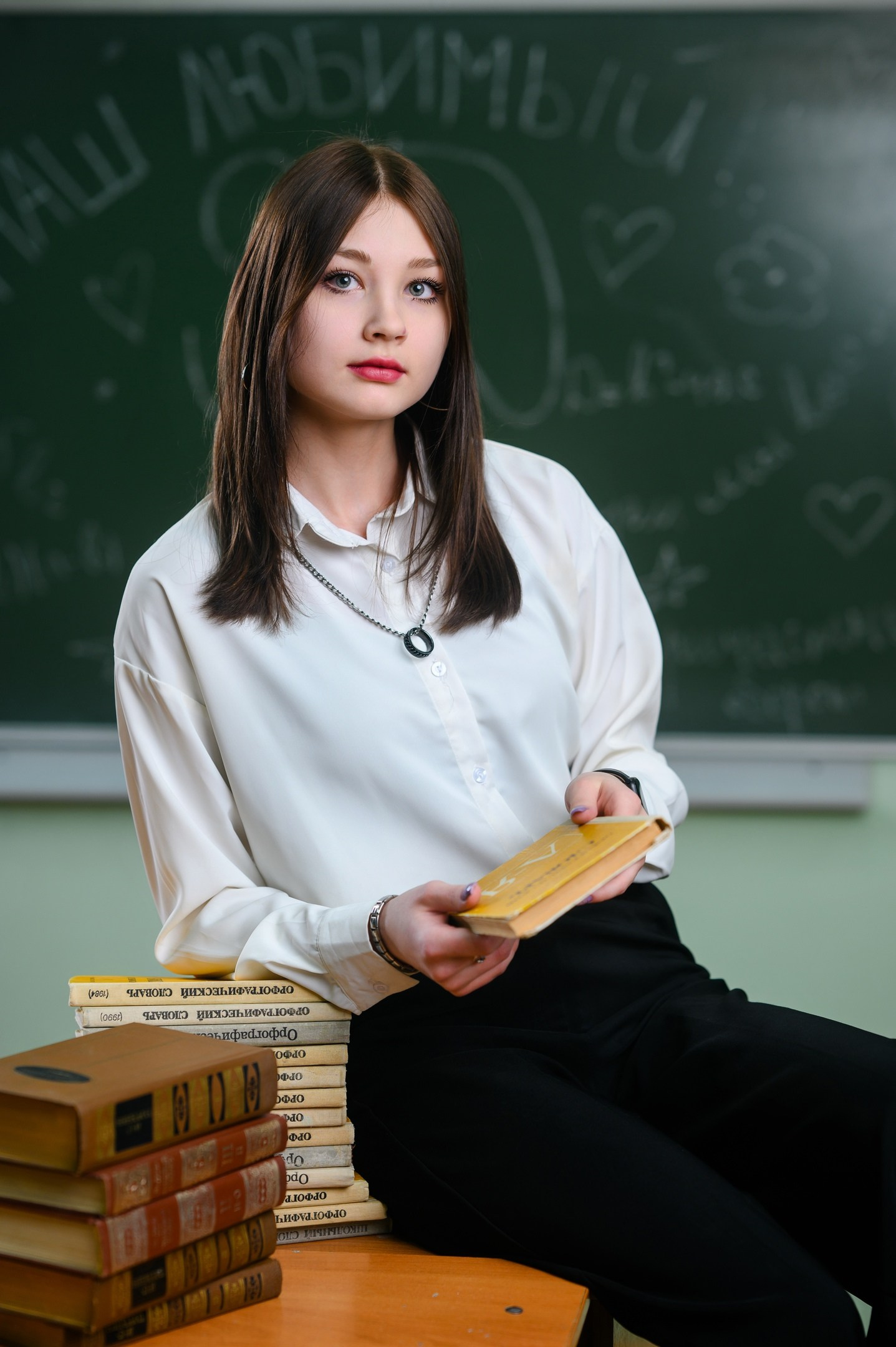 - 8-15 страниц с портретами учеников (по двое на страницу)